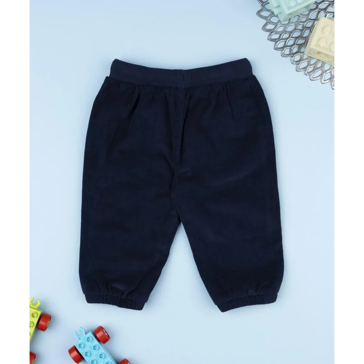 Estos pantalones de felpa en azul noche combinan suavidad y comodidad para el uso diario. Incorporan bolsillos laterales y cintura elástica con cordón ajustable que facilita un ajuste seguro y confortable. El detalle decorativo de un perrito bordado en el lateral añade un toque simpático y original al diseño.