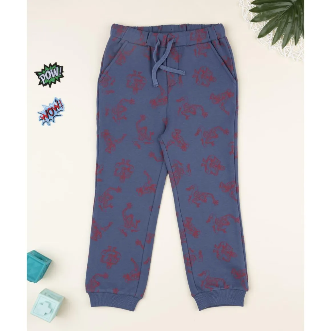 Este pantalón para niño en azul presenta un estampado all over de Spiderman en rojo que aporta energía al look. El interior afelpado ofrece calidez suave y la cintura elástica con cordón ajustable asegura un ajuste cómodo que acompaña el movimiento. Incluye bolsillos de corte diagonal prácticos para el día a día.