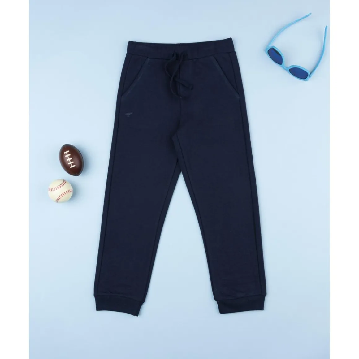 Estos pantalones para niño en color azul noche están confeccionados en terciopelo francés y tienen una cintura elástica ajustable con cordón para un ajuste cómodo. Los pantalones son perfectos para ocasiones casuales o deportivas, y su diseño sencillo y práctico los hace fáciles de combinar.
