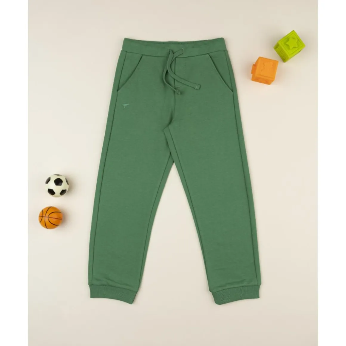 Estos pantalones para niño en color verde están confeccionados en terciopelo francés con una pequeña estampa en relieve coordinada. La cintura elástica ajustable con cordón asegura un ajuste cómodo y fácil de poner y quitar.