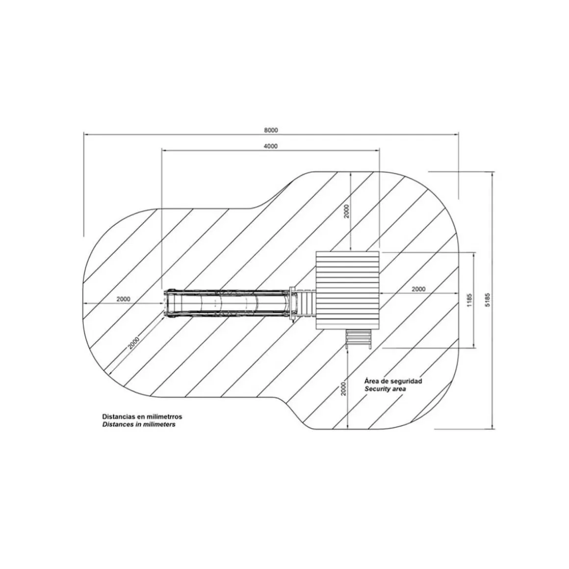 Dimensiones del producto montado: 172 cm largo x 400 cm ancho x 280 cm de alto.
