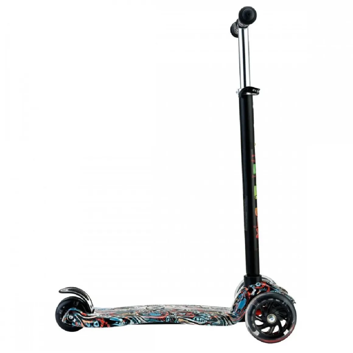 La plataforma del patinete tiene un colorido diseño impreso por transferencia de agua que encantará a los niños. El manillar se puede ajustar fácilmente en altura, desde 65 cm hasta 87 cm, adaptándose al crecimiento del niño para prolongar la diversión. Sus dimensiones compactas y su peso ligero lo hacen muy fácil de transportar.