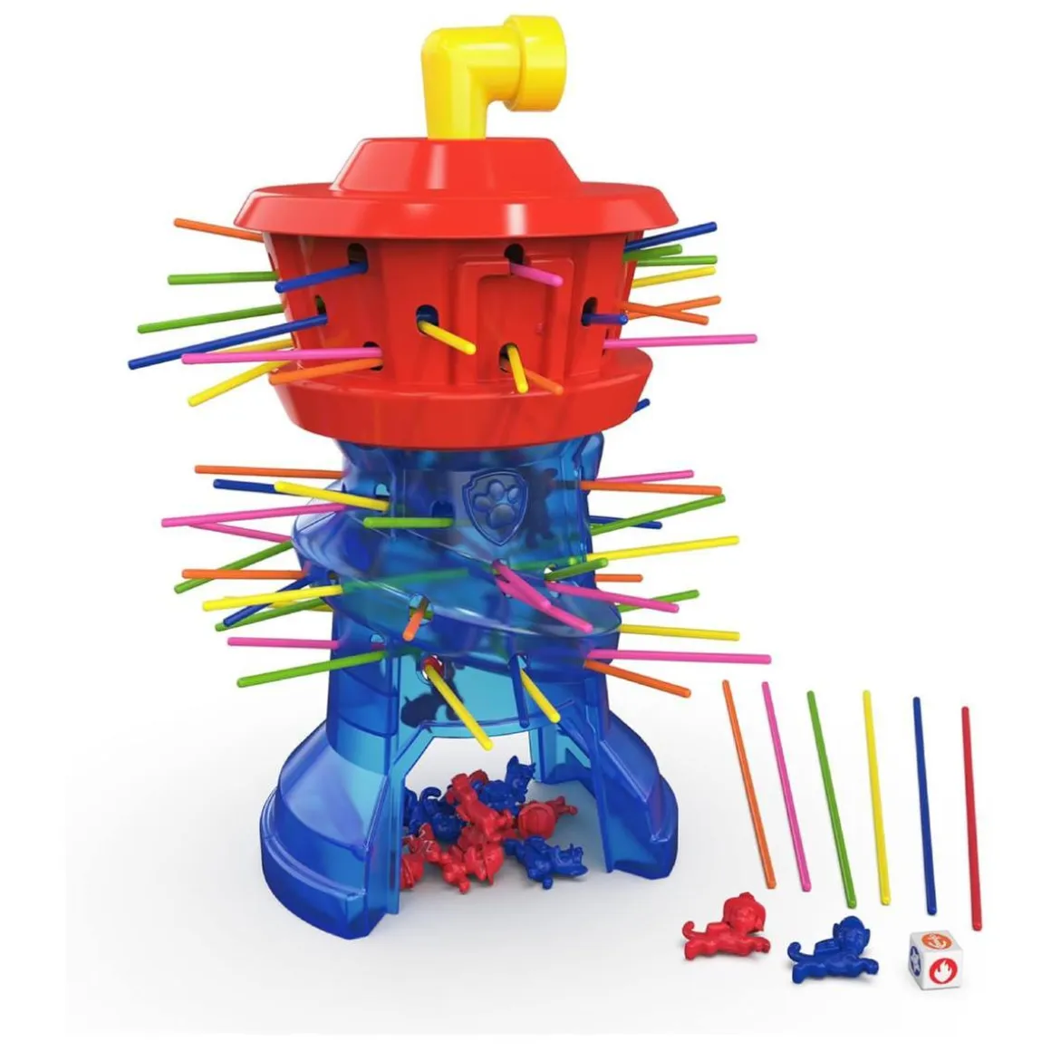 Cómo Jugar: Comienza insertando aleatoriamente los palillos a través de la torre de la Patrulla Canina. Luego, coloca las figuras de los cachorros dentro de la torre. Por turnos, los jugadores deben sacar un palillo sin que se caigan los cachorros. Si un cachorro cae, el jugador debe añadirlo a su pila. El objetivo es ser el jugador con menos cachorros al final del juego.