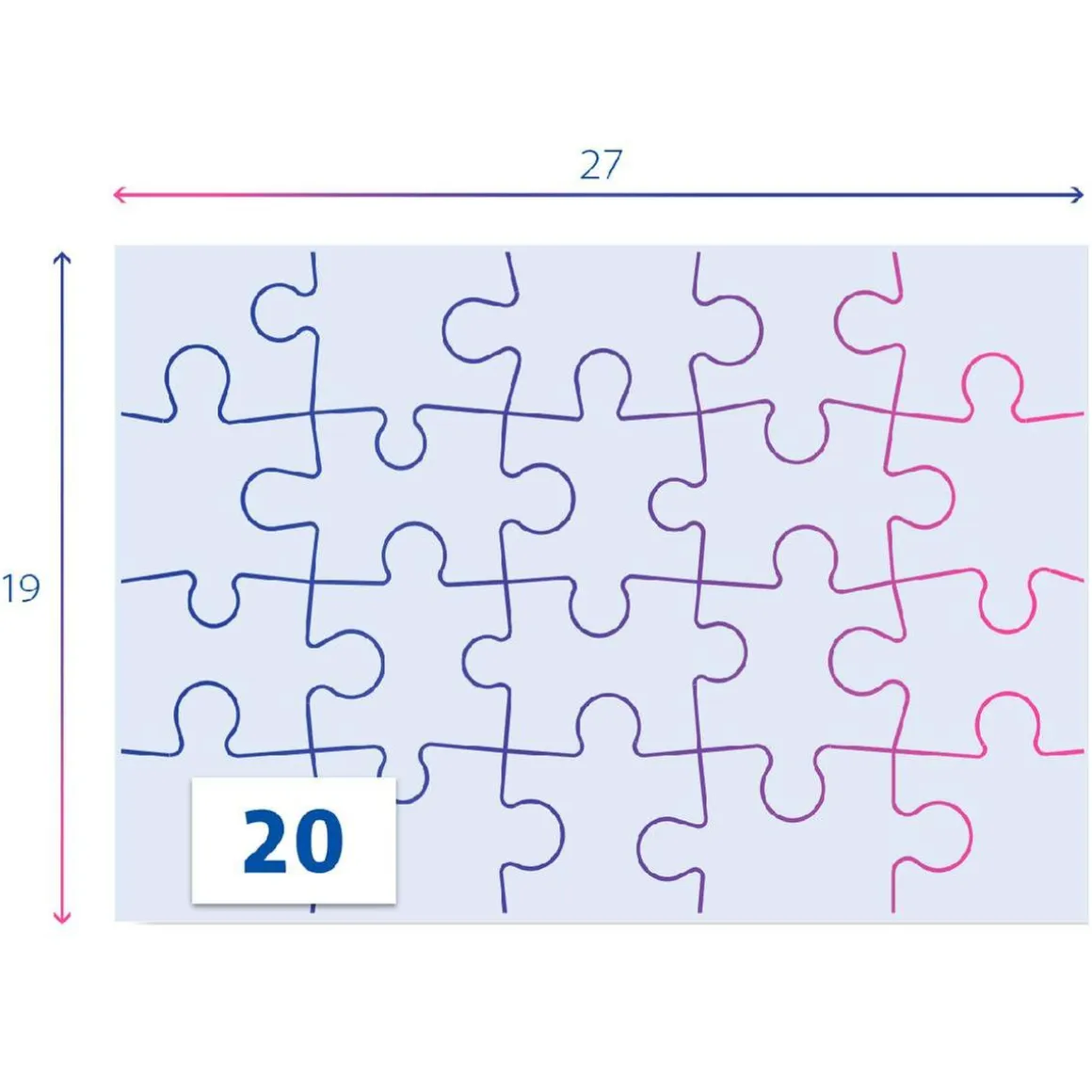 Se compone de 2 puzzles de 20 piezas cada uno y cuenta con material e impresión resistentes.