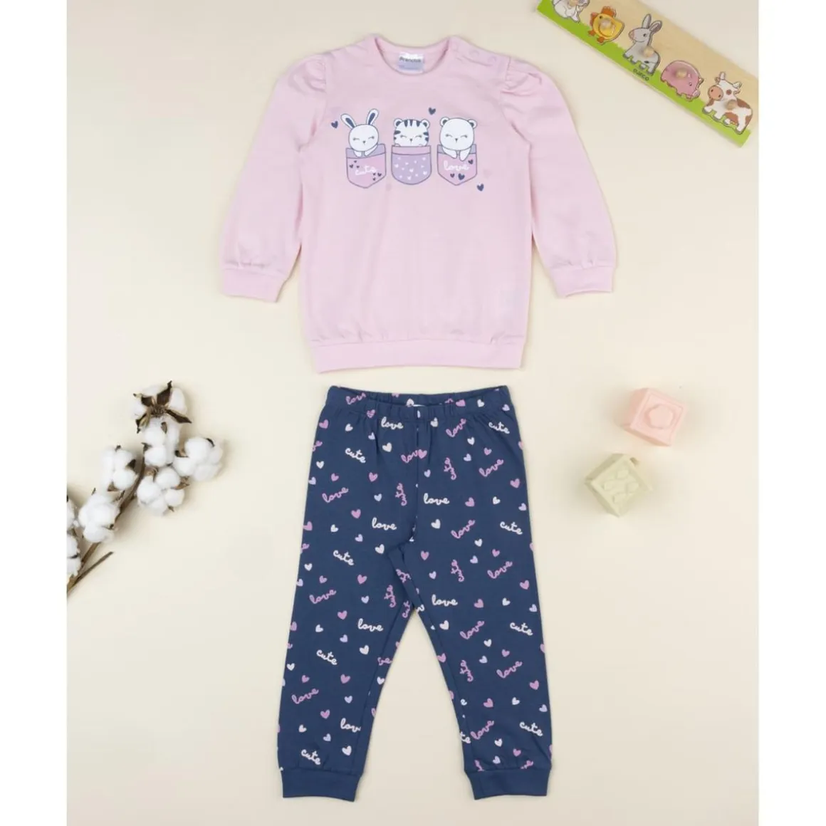 Pijama 2 piezas niña rosa/azul