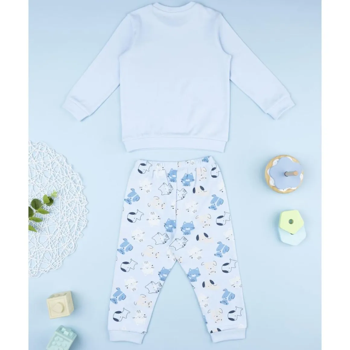Este pijama de dos piezas para niño combina comodidad y diversión con estampados coordinados de animalitos sobre fondo azul claro. La camiseta de manga larga y los pantalones a juego presentan un corte cómodo y ajustable gracias al elástico en la cintura, facilitando la movilidad y el descanso nocturno. Fabricado en algodón 100%, garantiza suavidad y transpirabilidad, cuidando la piel delicada del niño. Perfecto para dormir o momentos de relax en casa, este pijama es resistente, práctico y fácil de combinar, convirtiéndose en una prenda esencial para noches llenas de comodidad y estilo infantil.