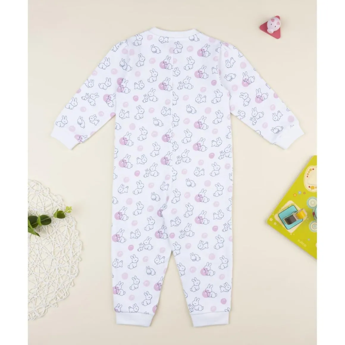 Pijama enterizo blanco con conejitos para niña