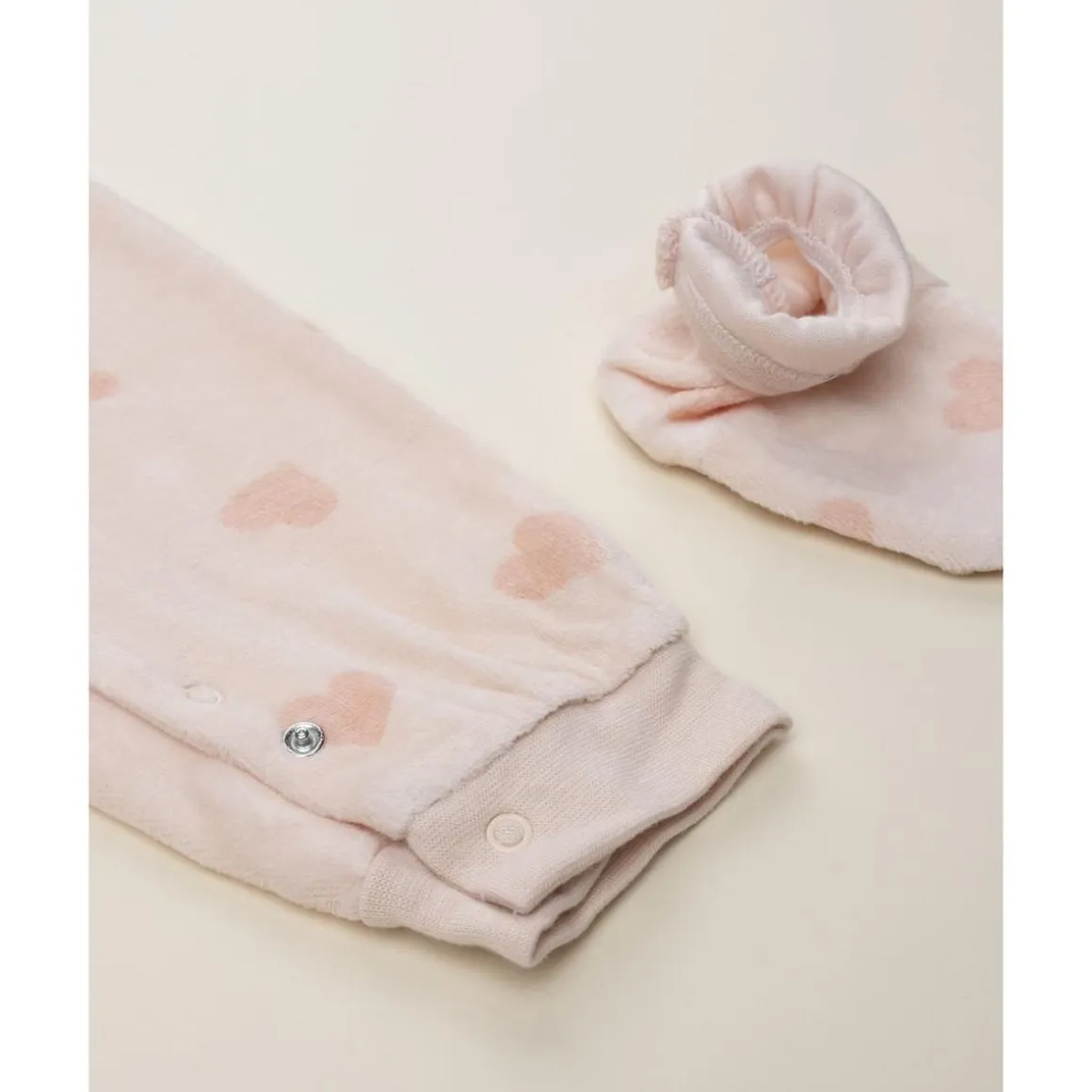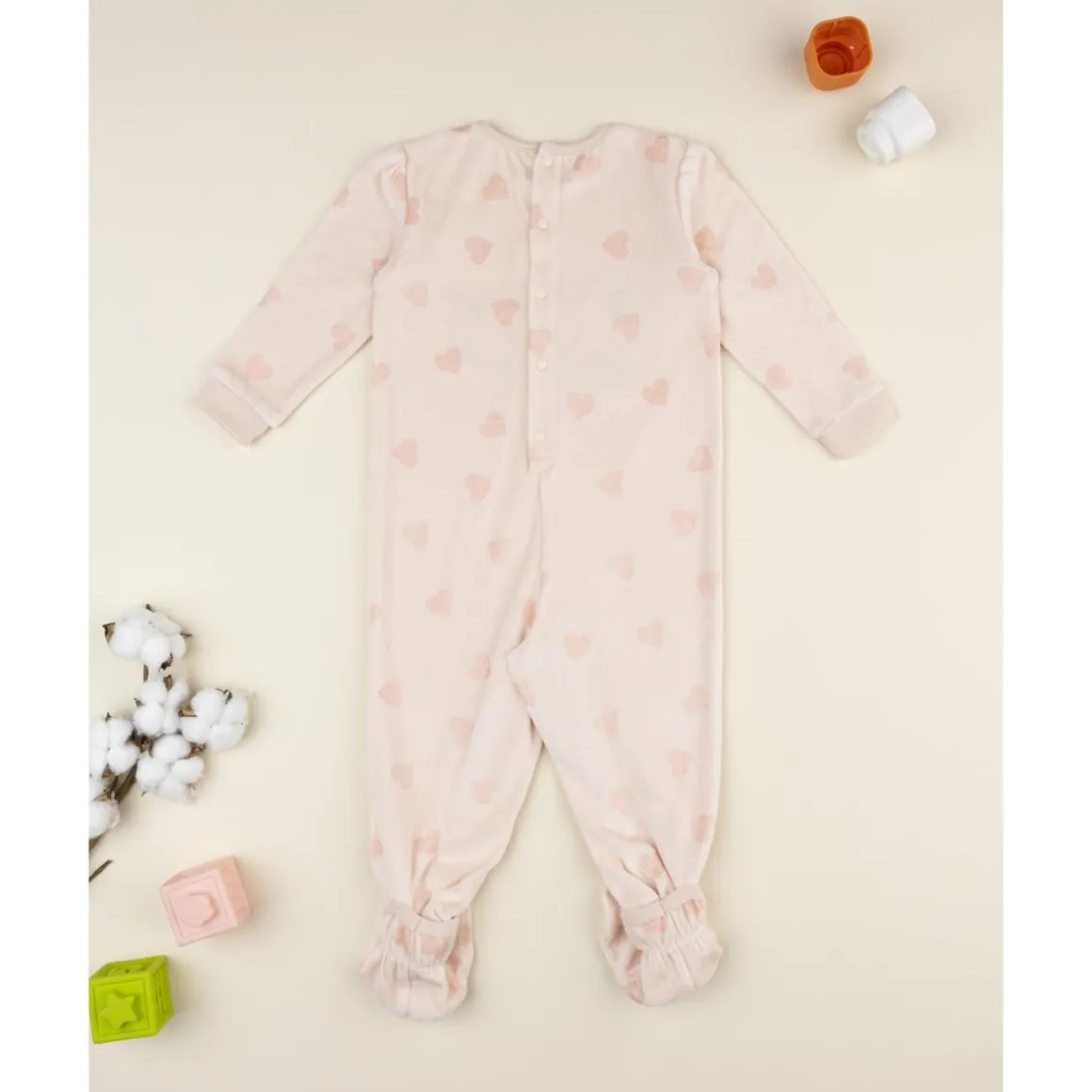 El pijama entero Marie es una prenda cálida y cómoda para las noches de invierno. De color rosa claro con estampado allover de corazones y la gatita Marie, ofrece un diseño adorable y funcional. Su cierre con botones automáticos en la espalda y el interior garantiza una colocación fácil y segura.