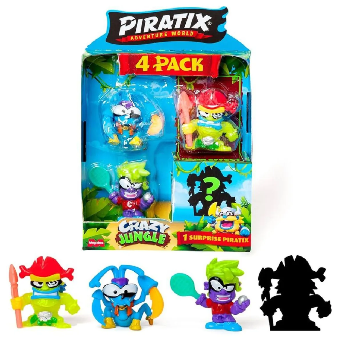 Piratix Crazy Jungle – Pack de 4 Piratix(varios modelos), ¡Embárcate en una aventura salvaje con el Pack de 4 Piratix Crazy Jungle!