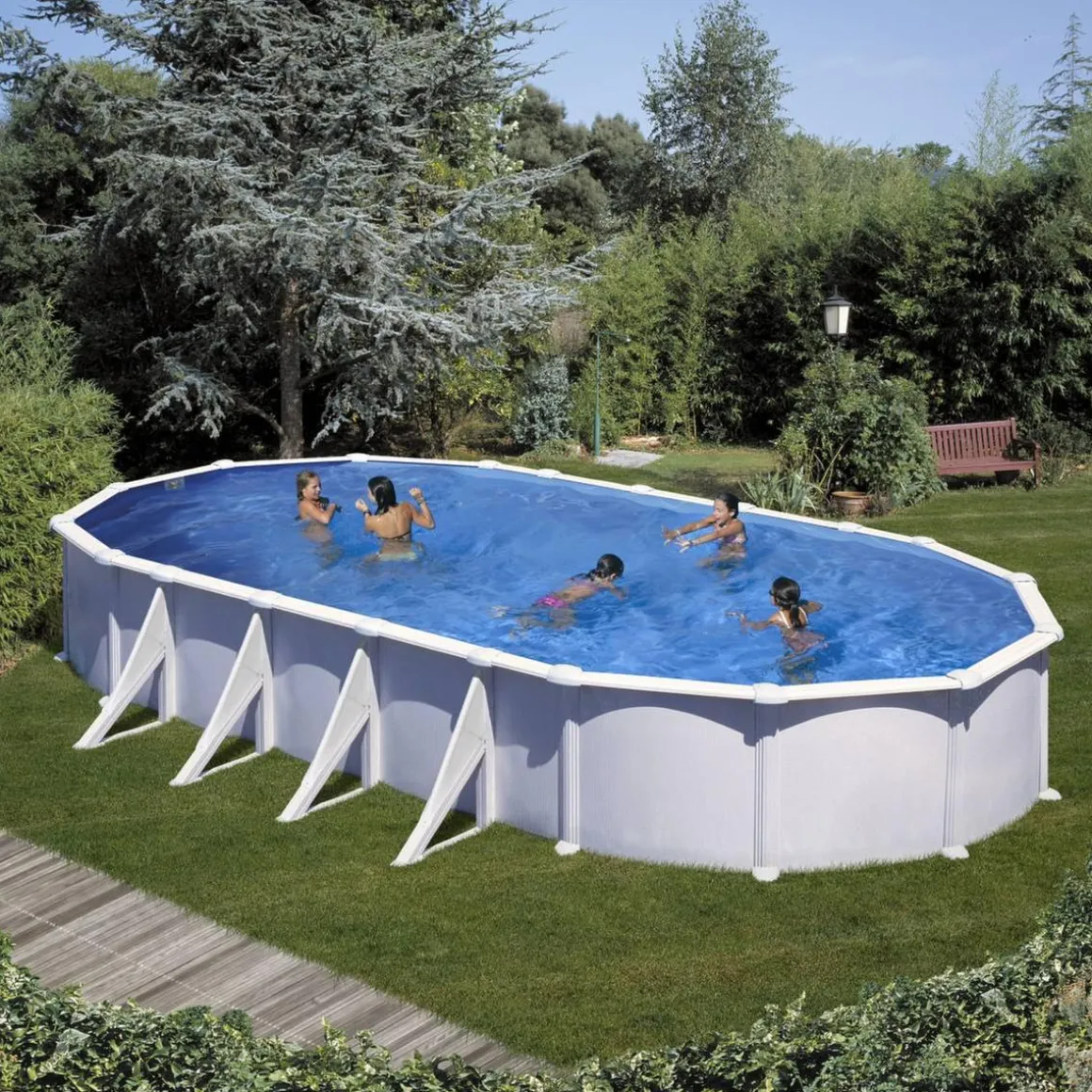 Piscina ovalada Atlantis 10 x 5,50 m, piscina ovalada de acero blanco de 1,30 m de altura.