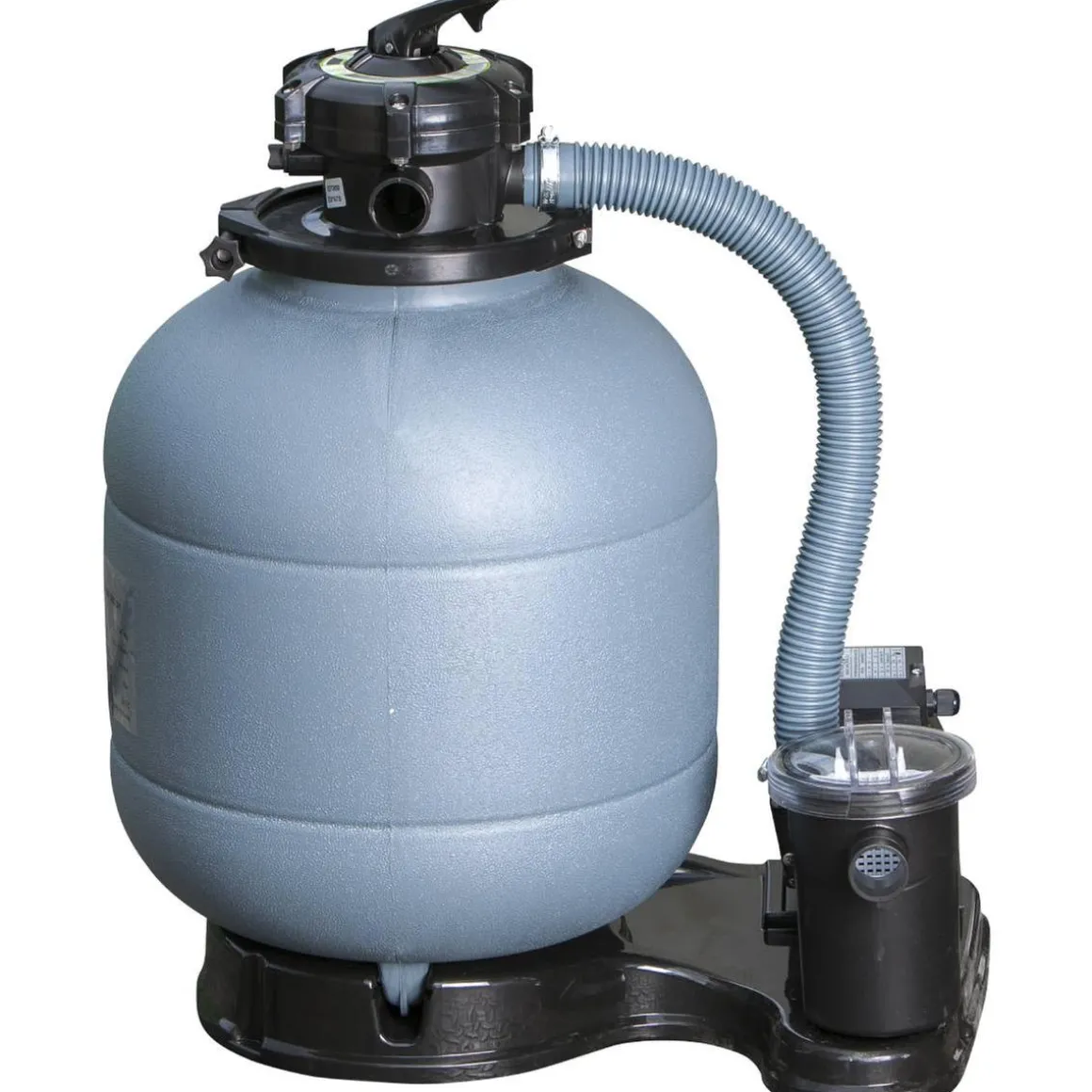 - Filtro de arena de 6 m³/h con 5 válvulas y potencia de 230W.