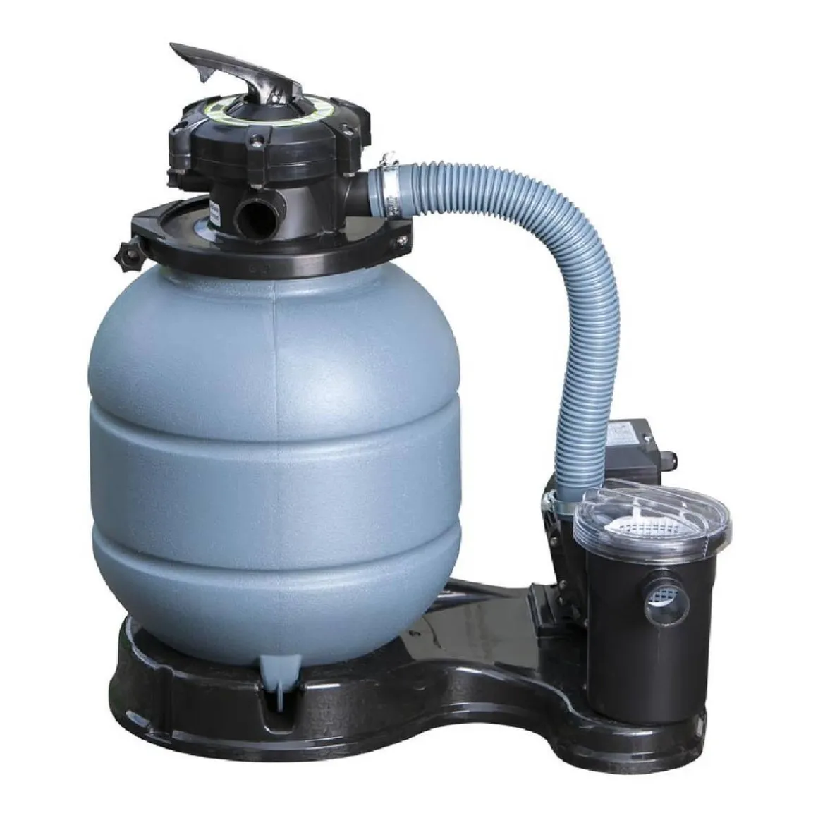 - Filtro de arena de 4 m³/h con 5 válvulas y potencia de 180W.