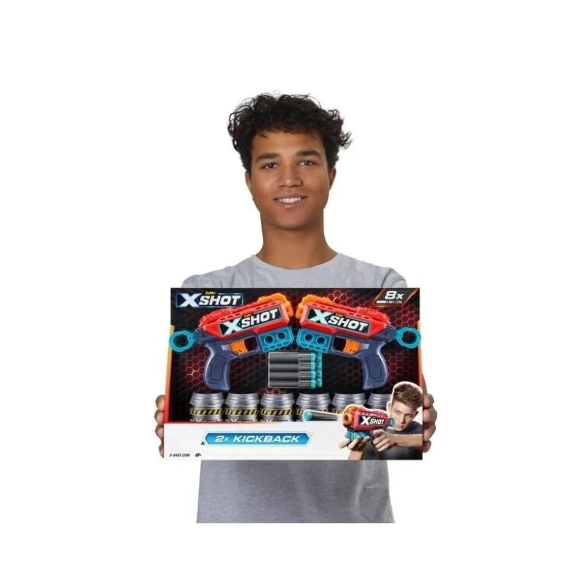 ¡Carga, apunta, dispara y vuelve a disparar! Con el increíble Set X-Shot Kickback 2 Pistolas con 8 Dardos de Zuru, la diversión está asegurada. Este set es perfecto para poner a prueba tu puntería o para desafiar a tus amigos en emocionantes competiciones de tiro.