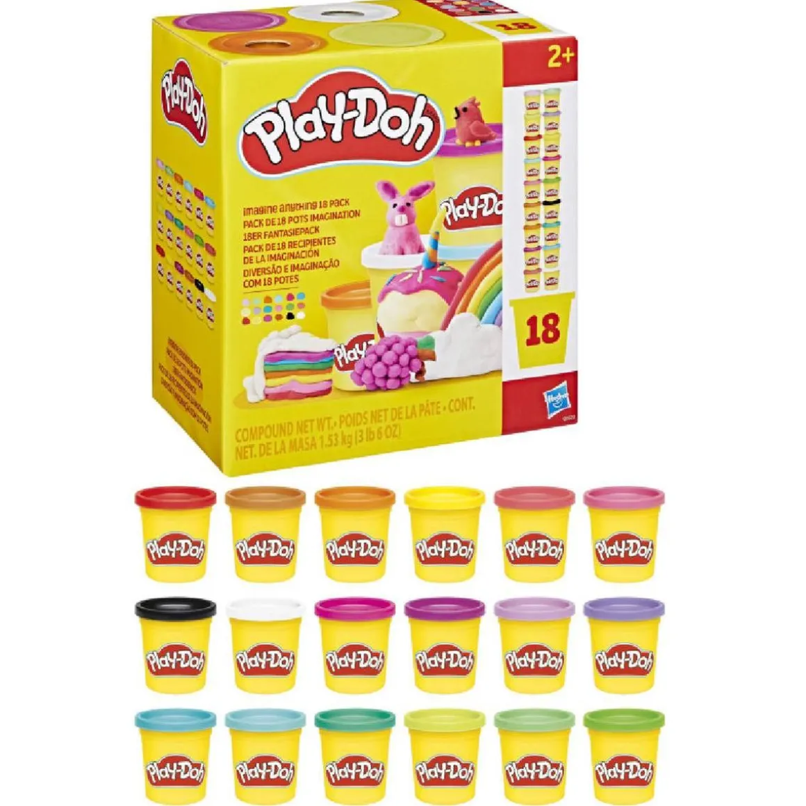 ¡Deja volar la creatividad con el Pack 18 Botes Imagine Anything de Play-Doh! Este set incluye 18 botes de 84 gramos con plastilina en una amplia gama de colores vivos, ideal para desarrollar la imaginación y pasar horas de diversión moldeando y creando formas sin fin.