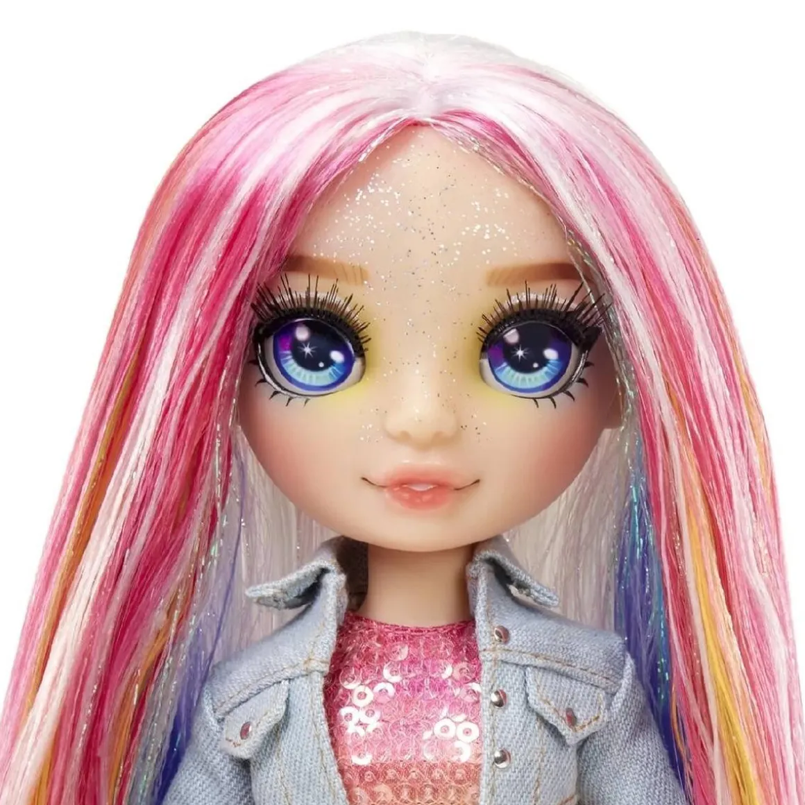 La moda de Amaya presenta unos rasgos preciosos y detallados y lleva una preciosa melena arcoíris, largas pestañas y ojos de cristal.