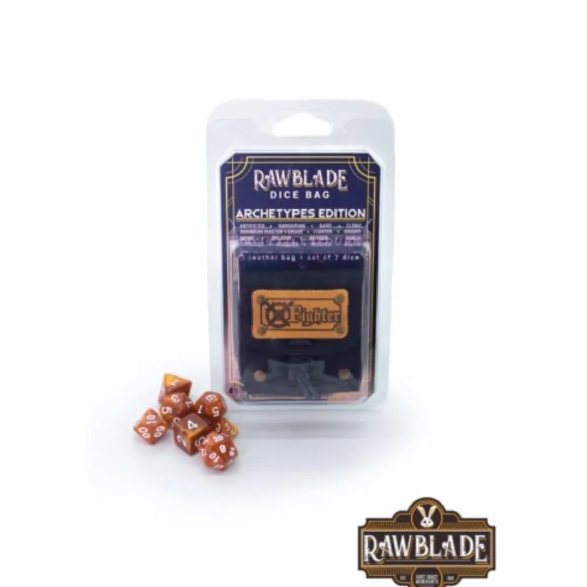 Rawblade – Dados y bolsa de cuero Luchador, los dados del luchador más místicos para tu juego de rol.