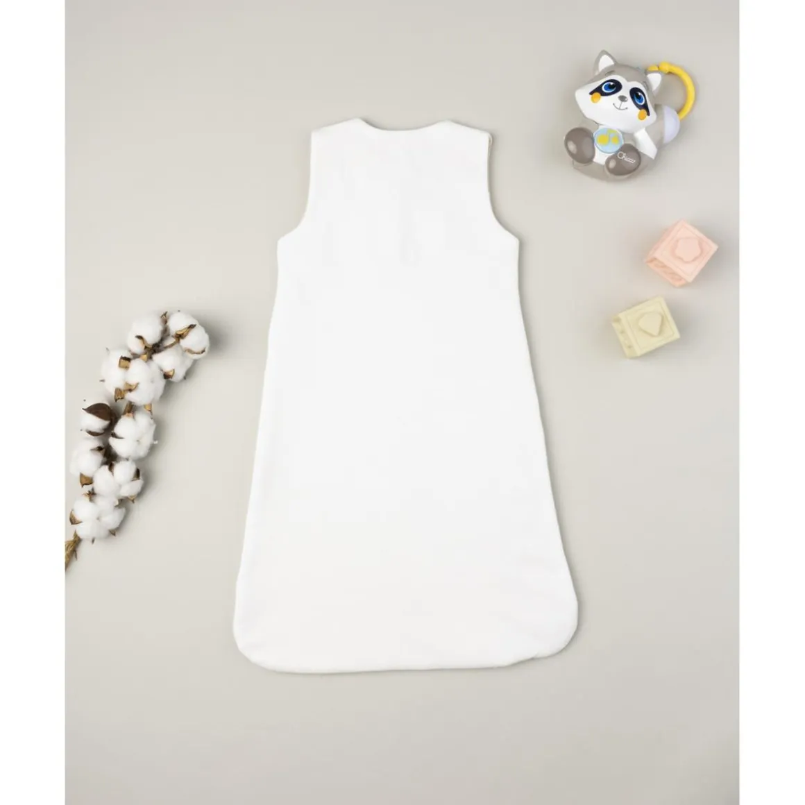 Dulce saco de dormir para niña. Prenda en color crema total con estampado de animalito coordinado. Uso práctico y manejable gracias a cremallera frontal en línea transversal. Fabricado en algodón oeko-tex, probado para sustancias nocivas que asegura alta seguridad. Accesorios no incluidos. El paquete contiene solo la prenda de vestir.