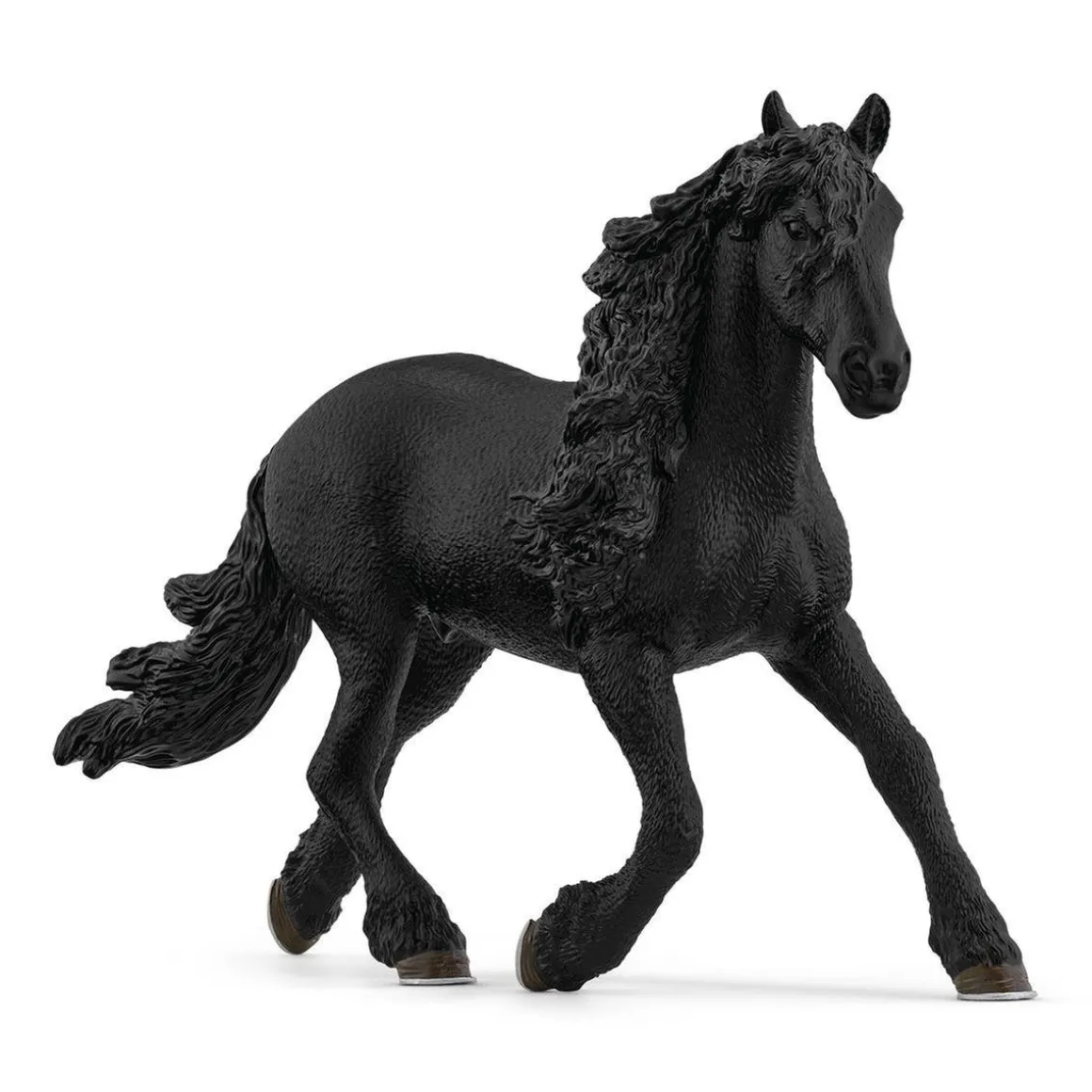 ¿Tu hijo sueña con galopar aventuras increíbles junto a su colección de caballos? La figura de plástico del Étalon Frisón Schleich® está lista para unirse a su equipo y crear historias sin fin. Su paso rápido y estilizado hace que su melena flote sobre su lomo, mostrando la majestuosidad de un caballo negro como la noche.