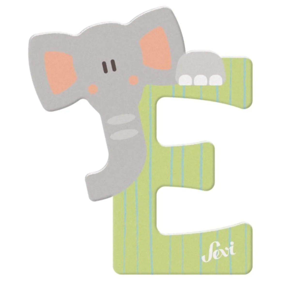 La E es ideal para formar nombres, palabras divertidas o decorar la habitación con un toque único. Además, su simpático elefante la hace aún más especial.