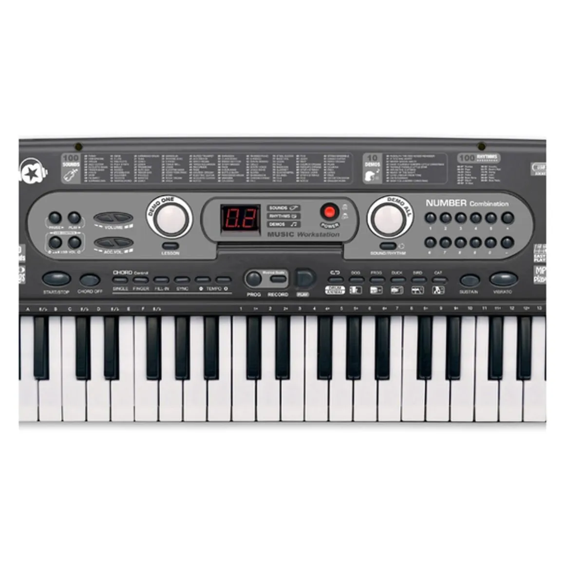 Este teclado musical no sólo cuenta con 54 teclas, sino que además incluye la increíble cantidad de 100 sonidos diferentes para probar. Este sintetizador no está limitado a los sonidos de piano, sino que ofrece todo un mundo de posibilidades. ¡Imagina todas las melodías que tu hijo puede crear con 100 opciones de sonido a su disposición!
