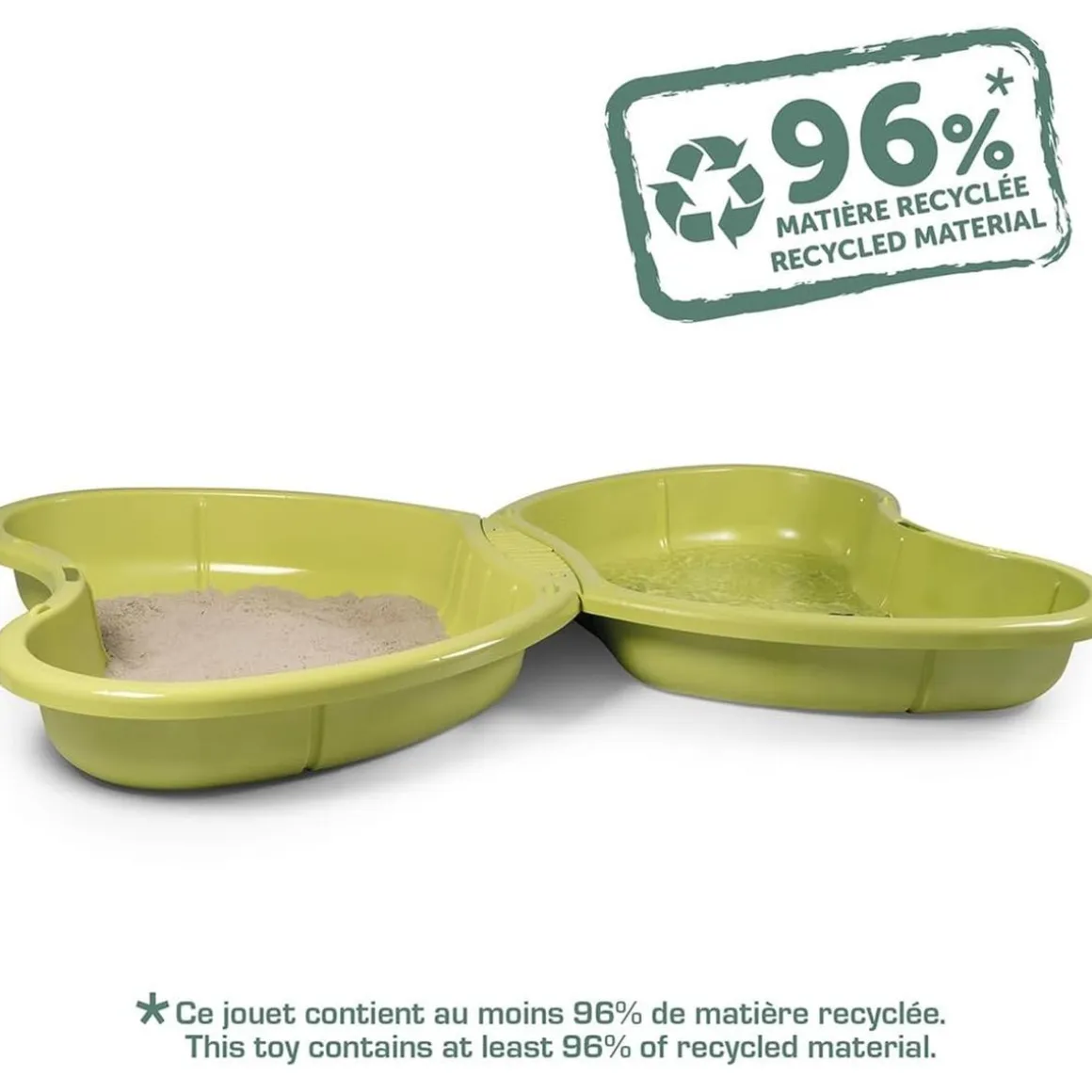 Este original arenero tiene forma de mariposa y está diseñado con dos bandejas que se conectan fácilmente. Una parte se puede llenar con arena para construir castillos y figuras, mientras que la otra se puede llenar con agua para refrescarse y jugar.