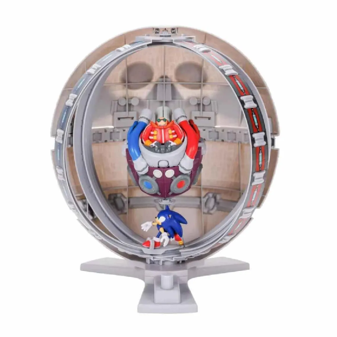 Deja que Sonic monte las dos pistas circulares en el interior del huevo que mide más de 30 cm.