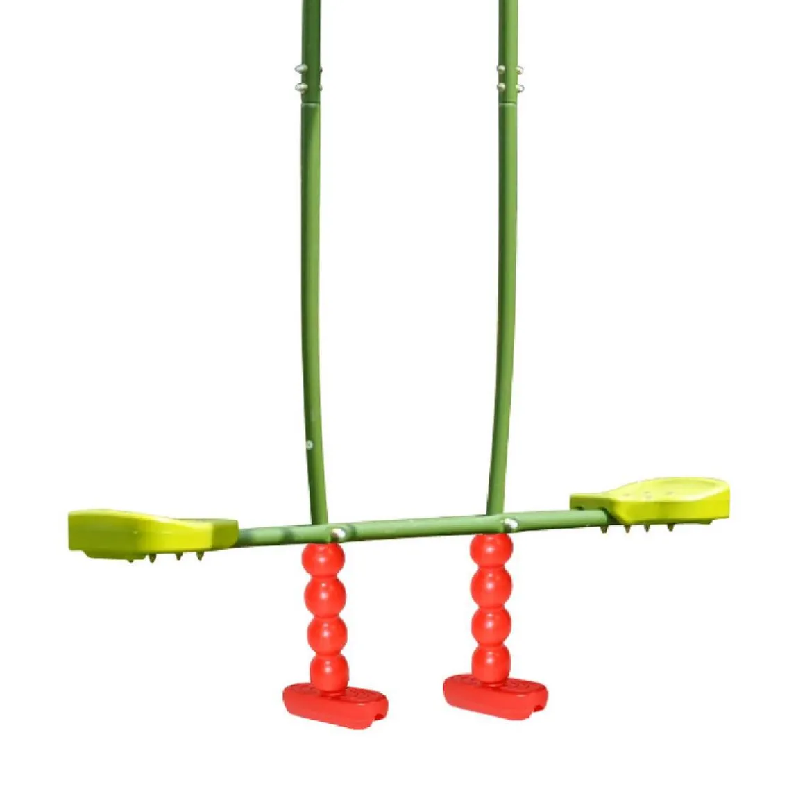 Capaz de soportar un peso máximo de 70 kg, (35 Kg por cada niño) este balancín se adapta a pórticos de 222 cm de altura.