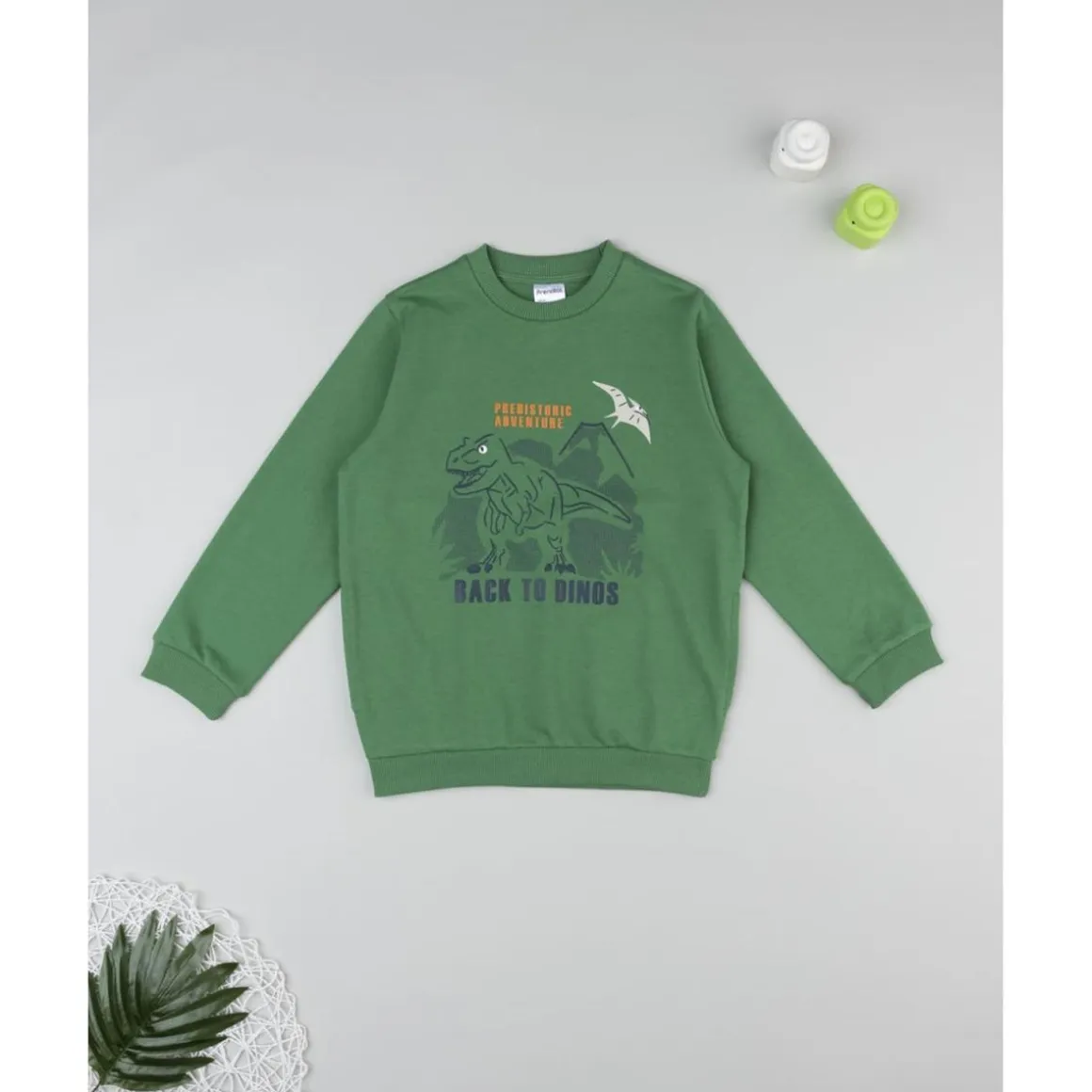 Esta sudadera ligera para niño es perfecta para mantener a tu pequeño cómodo y a la moda. Confeccionada en color verde, la sudadera presenta un estampado en relieve de temática de dinosaurios en el frontal. La prenda tiene un ajuste cómodo y una fit regular, ideal para un look casual y cómodo.