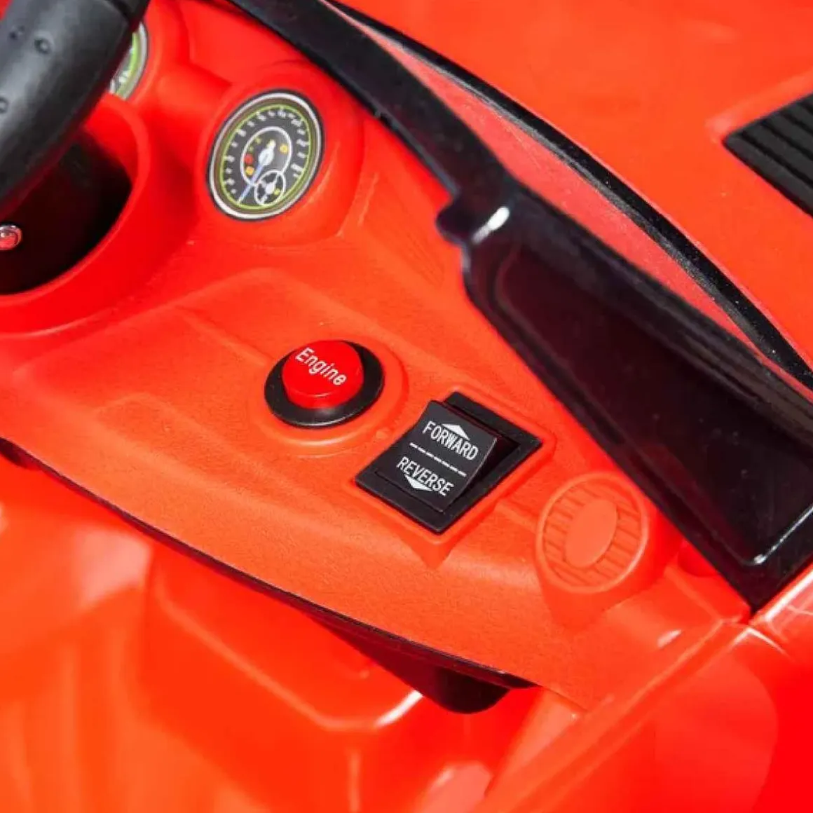 El vehículo eléctrico puede avanzar o retroceder y tiene botones en el interior para hacerlo más realista. El coche emite sonidos y luces, las puertas se abren y cierran y está equipado con cinturón de seguridad.