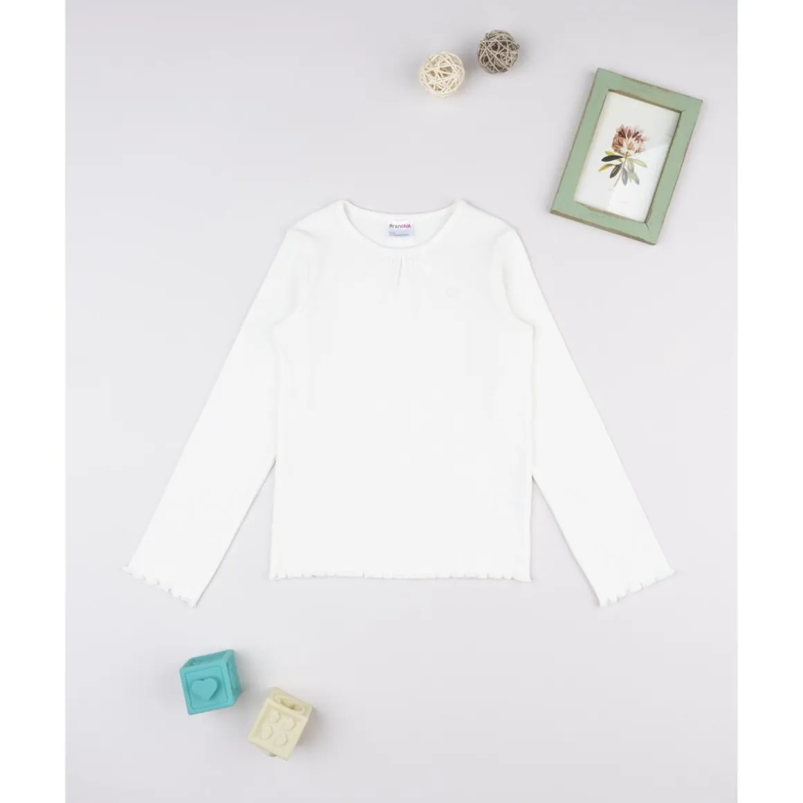 Esta camiseta básica de manga larga para niña en color blanco destaca por su comodidad, suavidad y ajuste regular. Fabricada en algodón con un pequeño porcentaje de elastano, ofrece elasticidad, transpirabilidad y suavidad para la piel delicada de la niña. Ideal para combinar con pantalones, faldas o leggins, esta camiseta es perfecta para actividades diarias, juegos y ocasiones casuales. Su corte cómodo y tejido de calidad aseguran libertad de movimiento y durabilidad, convirtiéndose en una pieza versátil y esencial en el armario infantil, fácil de combinar y mantener.