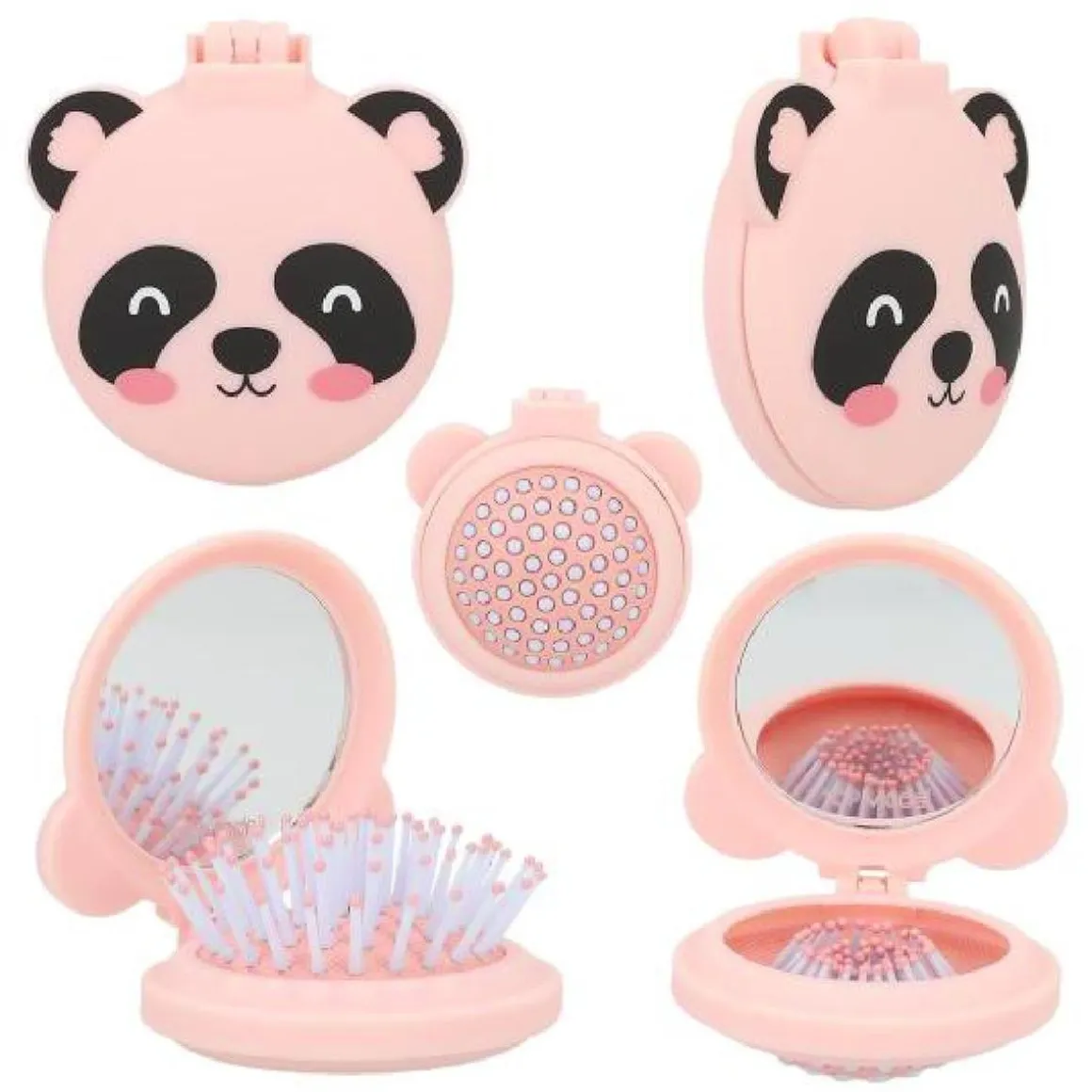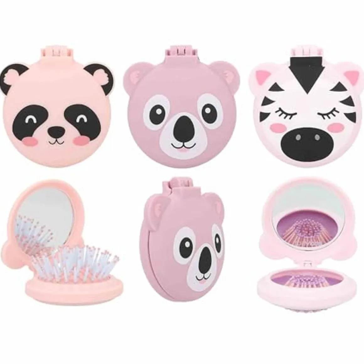 El «Top Model – Cepillo de pelo plegable con espejo» es la opción perfecta para añadir un toque de diversión y funcionalidad a la rutina de cuidado personal de los niños. Este adorable cepillo, disponible en tres encantadores diseños de animalitos como oso, panda y cebra, no solo desenreda el cabello con suavidad, sino que también incluye un práctico espejo en su interior. Su diseño plegable es ideal para llevar en cualquier bolso o mochila, asegurando que el pequeño esté siempre listo para cualquier retoque en el camino.
