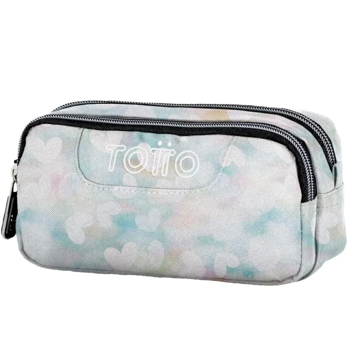 Totto – Estuche escolar dos compartimentos corazones pastel Sobre, un estuche escolar con dos espaciosos compartimentos con cremallera.