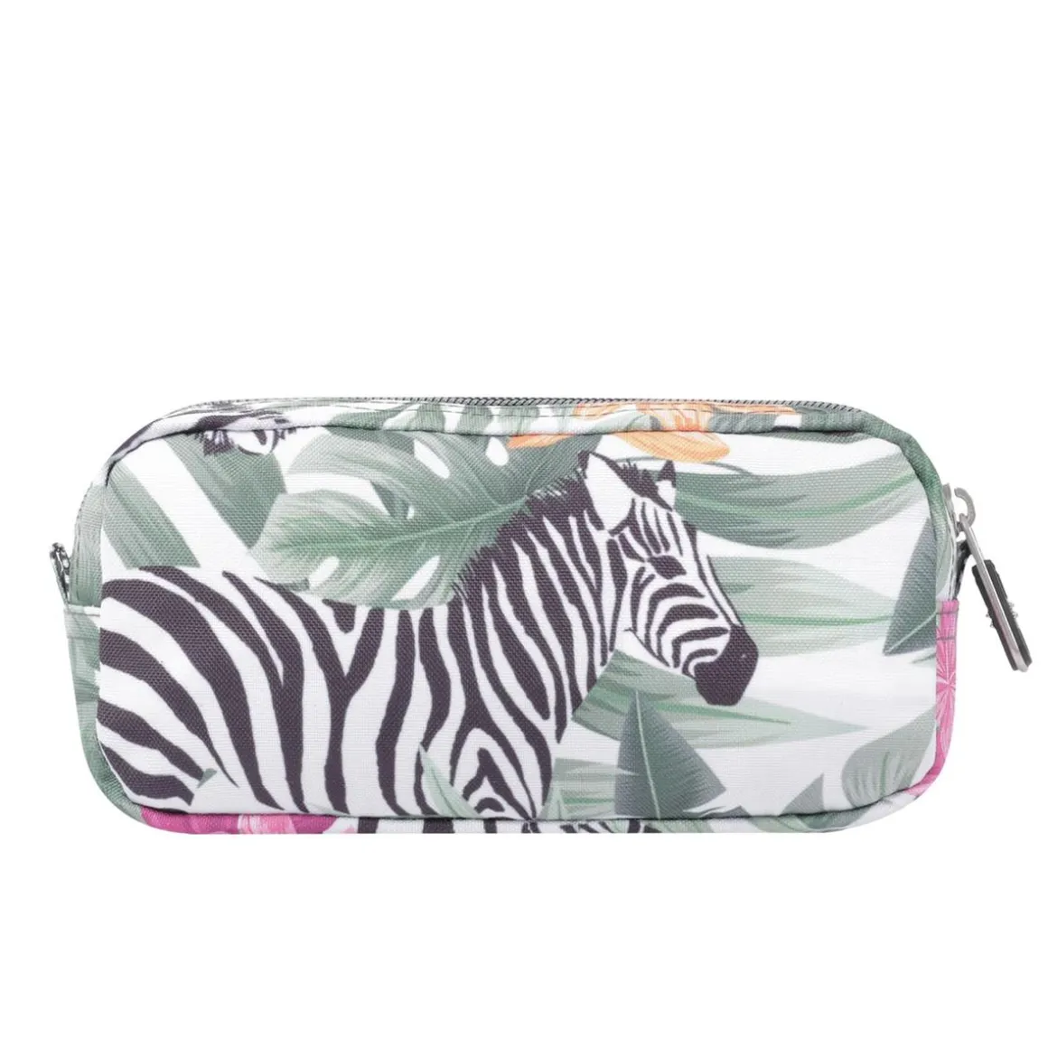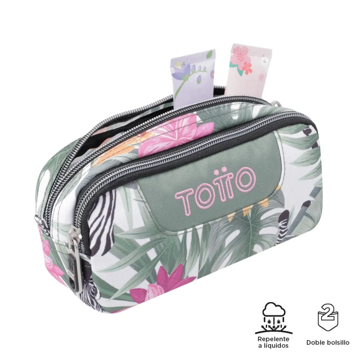 Totto – Estuche escolar dos compartimentos tropical cebras Sobre, un estuche escolar con dos espaciosos compartimentos con cremallera.
