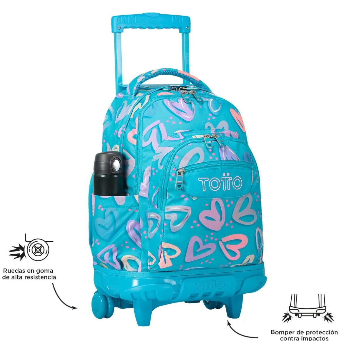 Totto – Mochila escolar con ruedas corazones pintados Renglones