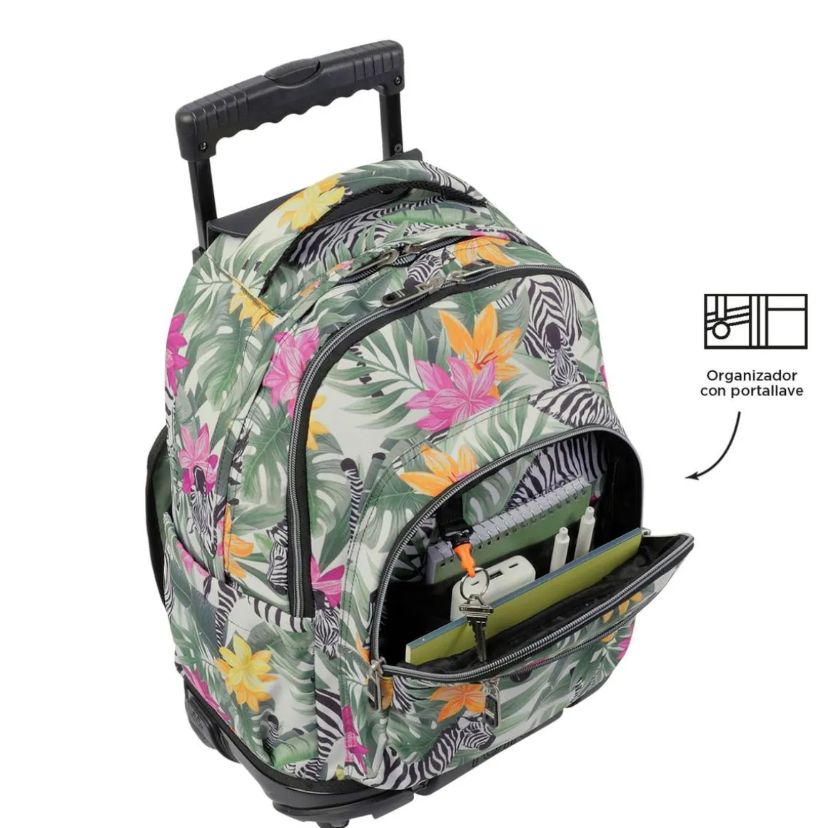 Totto – Mochila escolar con ruedas tropical cebras Renglones, una mochila fabricada con materiales muy resistentes de la colección Renglones.