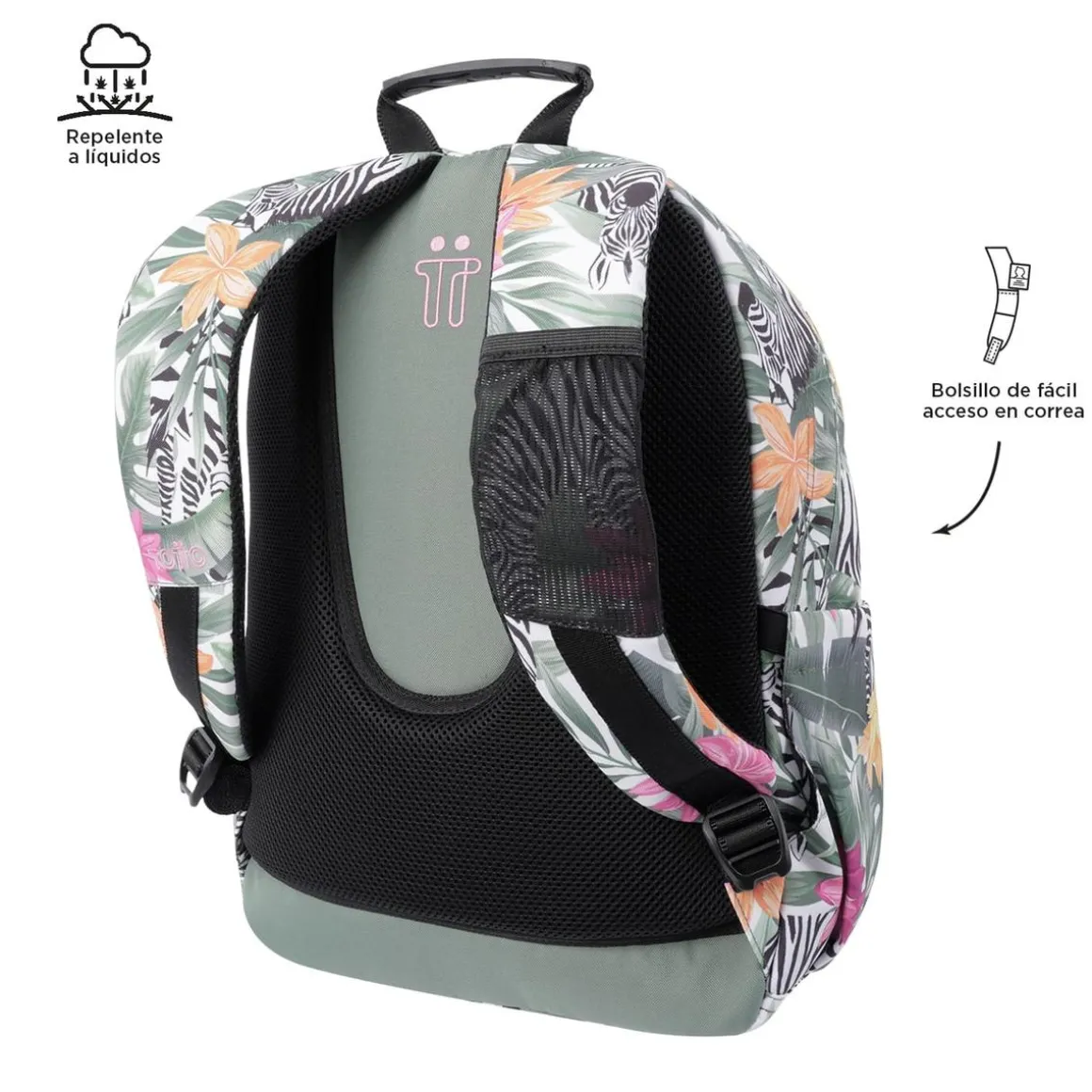 Totto – Mochila escolar tropical cebras Acuarela, una mochila fabricada con materiales muy resistentes de la colección Acuarela.