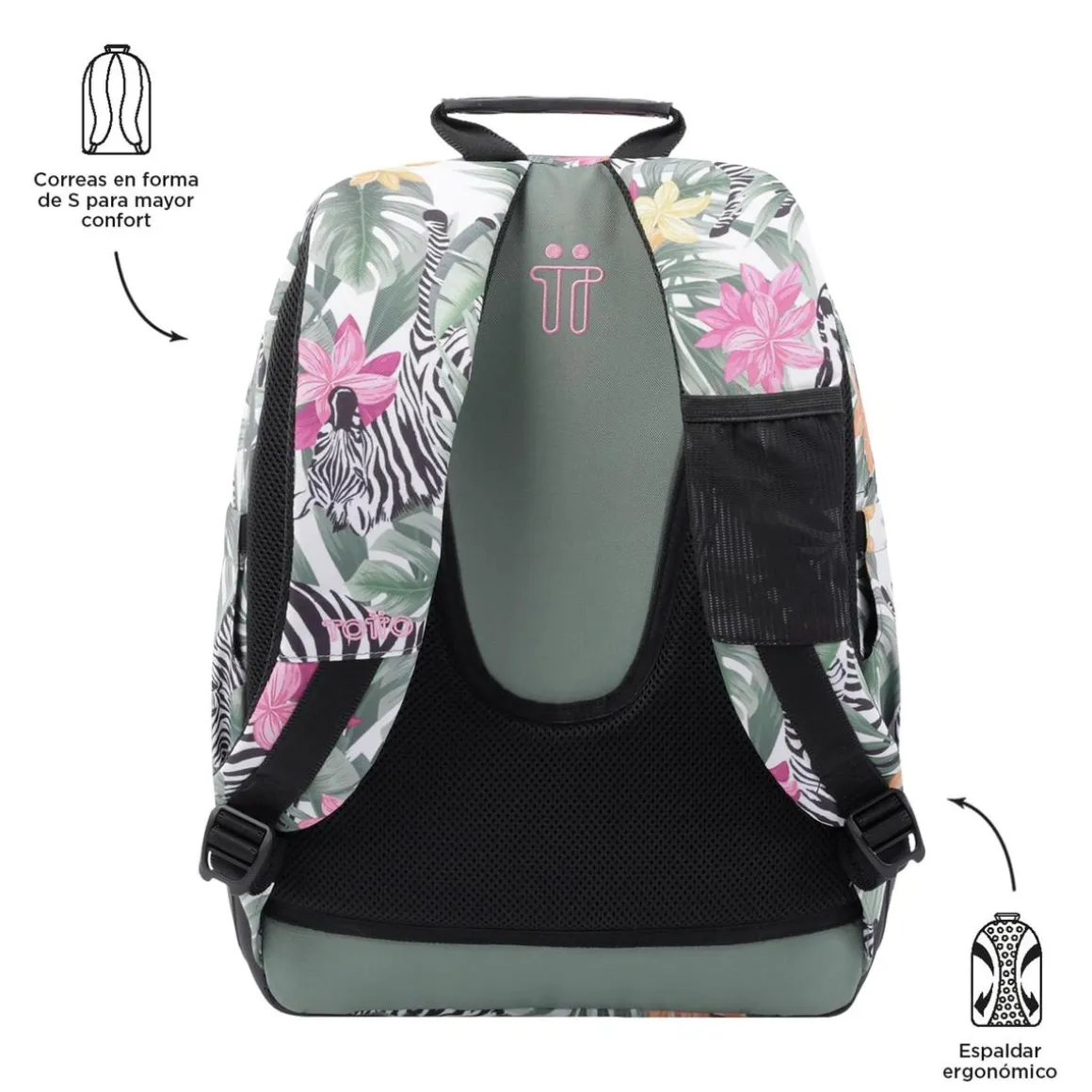 Totto – Mochila escolar tropical cebras Crayoles, una mochila escolar de la colección Crayoles.