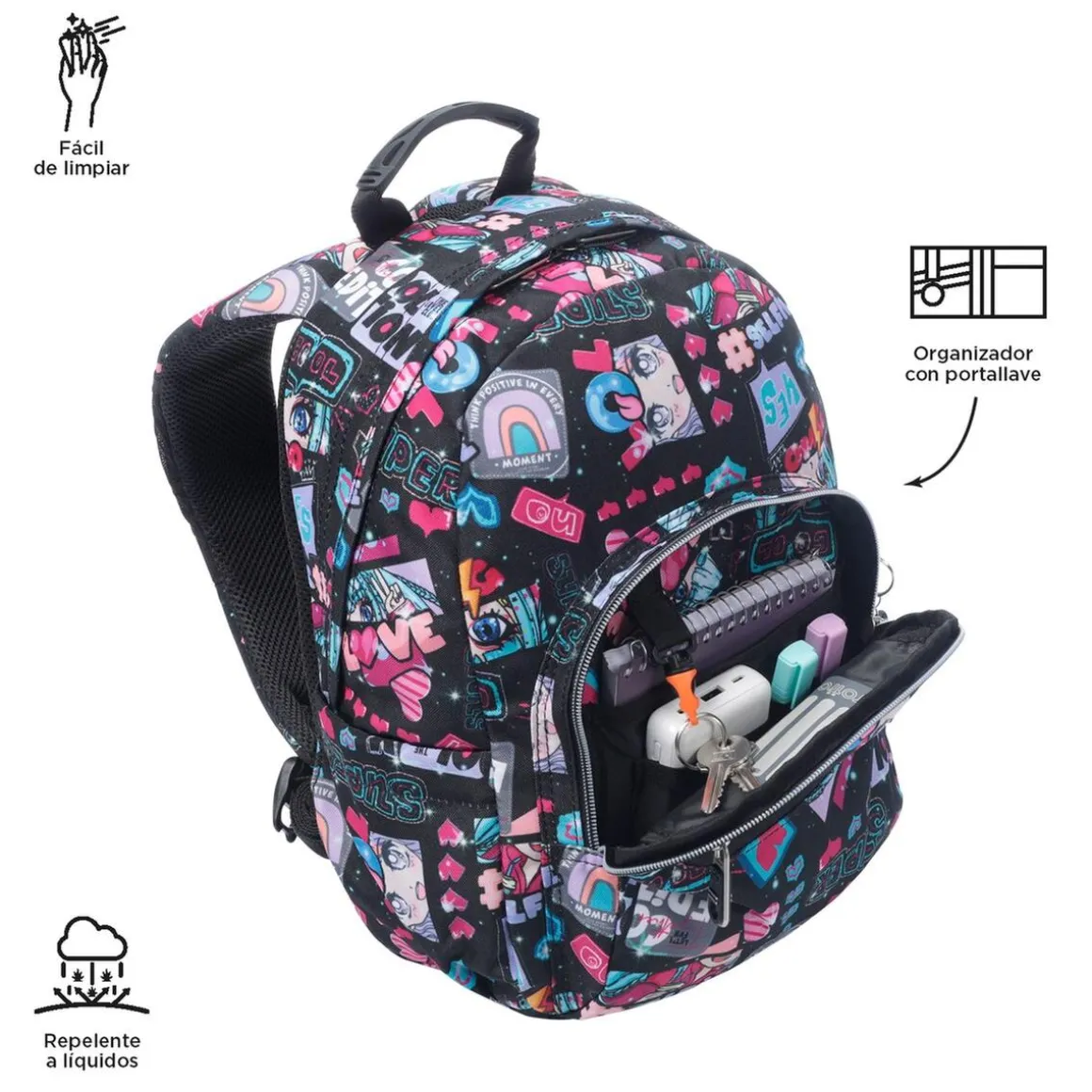 Disponible en varias tonalidades, este modelo está pensado para que puedas guardar sus primeros accesorios y libros escolares con comodidad. También será de utilidad para llevar ropa de cambio, comida o juguetes al parque.