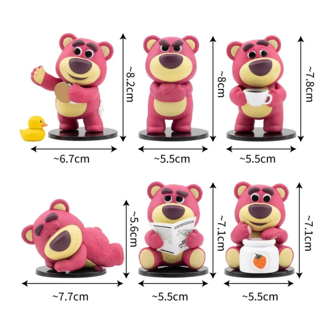 Sumérgete en el abrazo nostálgico del adorablísimo Lotso, el oso más amoroso de la saga Toy Story 3, con esta figura coleccionable de la serie “Teddy Bear”. Con aproximadamente 8 cm de altura, diseño multicolor y detalles encantadores, esta pieza captura la ternura y personalidad de Lotso y es ideal para coleccionar, decorar o regalar a fans de todas las edades.