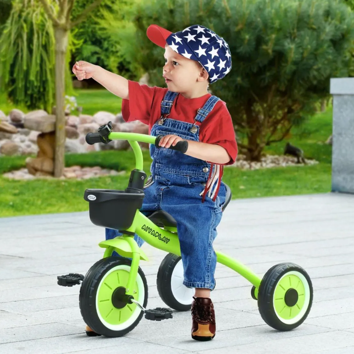 Triciclo con timbre y cesta Verde, ¡Haz que cada paseo sea una nueva aventura!