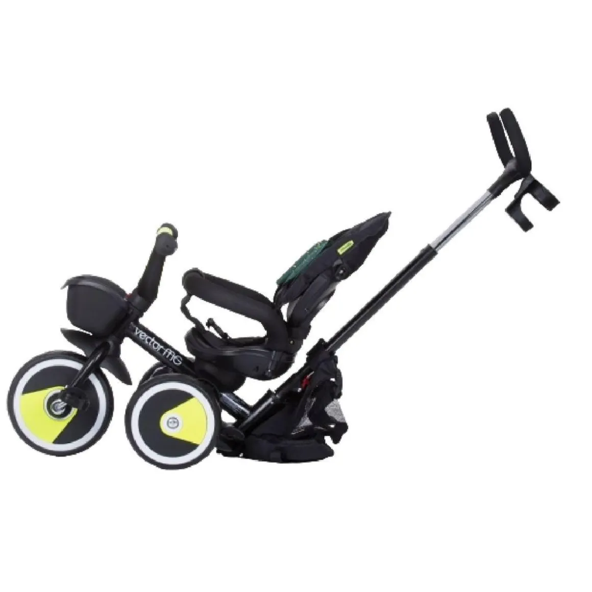 Triciclo evolutivo plegable verde, un triciclo evolutivo, reversible y con capota.